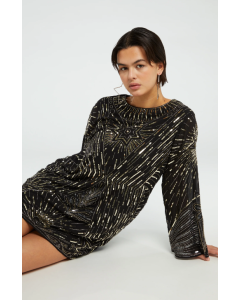 Fabienne Chapot Zali dress is een prachtige jurk uitgevoerd in de kleur zwart met goud en zilveren glitters.
