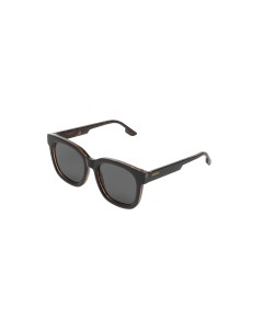 Komono Sienna Black Tortoise. Zonnebril met groot vierkant montuur, uitgevoerd in zwart met schilpadmotief. De lenzen hebben een donkergrijze kleur.