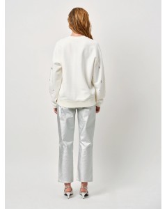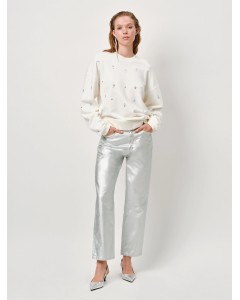Dante 6 Axelle is een straight jeans uitgevoerd in het zilver. De broek is voorzien van riemlussen en een knoop- en ritssluiting.